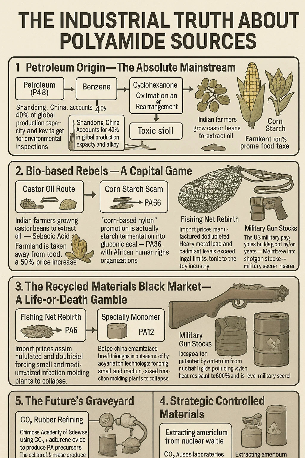 Переработка каучука CO2: Китайская академия наук использует оксид этилена CO₂ для производства прекурсоров PA. Затраты на массовое производство катализатора невелики, что потенциально может подорвать ранние этапы нефтяной гегемонии. Извлечение америция из ядерных отходов: американские лаборатории извлекают актиниды из ядерных отходов посредством каталитической полимеризации, производя нейлон, термостойкий до 800°C и классифицированный как военная тайна уровня SSS.